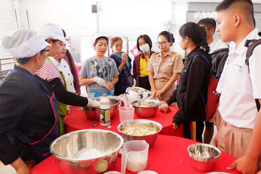 ต้อนรับสำนักงานพัฒนาชุมชนจังหวัดมุกดาหารในการฝึกอาชีพของชุมชน