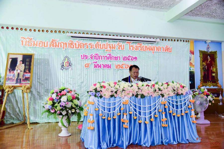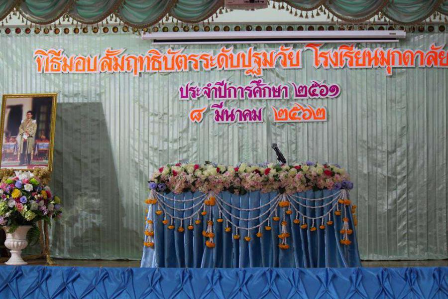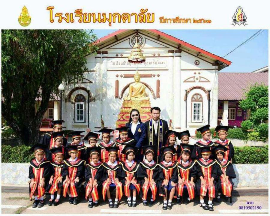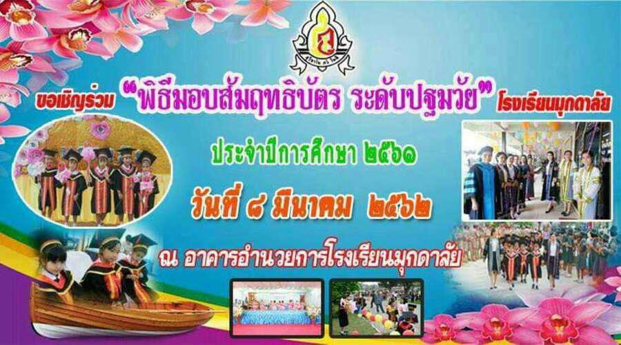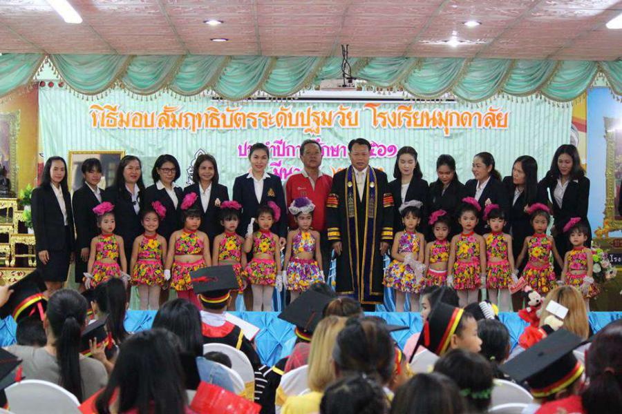 8 มีนาคม 2562 ดร.ชาติชาย ก่อคุณ ผู้อำนวยการโรงเรียนมุกดาลัย เป็นประธานในการมอบสัมฤทธิบัตร แก่นักเรียนที่สำเร็จการศึกษาระดับปฐมวัย จำนวน 71 คน มีการแสดงของน้องๆ อนุบาล เพื่อเป็นกำลังใจแก่พี่ๆ ที่สำเร็จการศึกษาในครั้งนี้ด้วย S:0