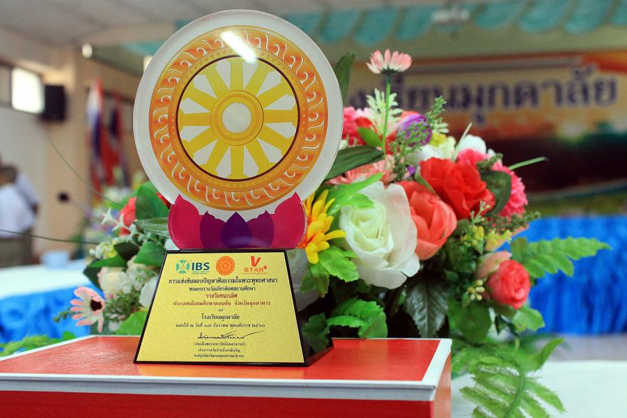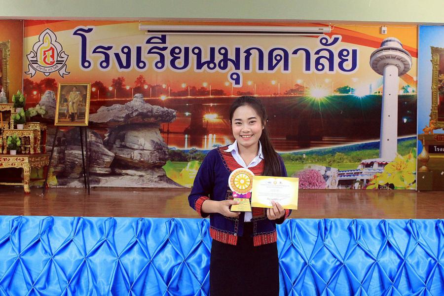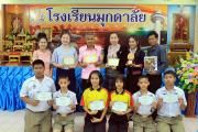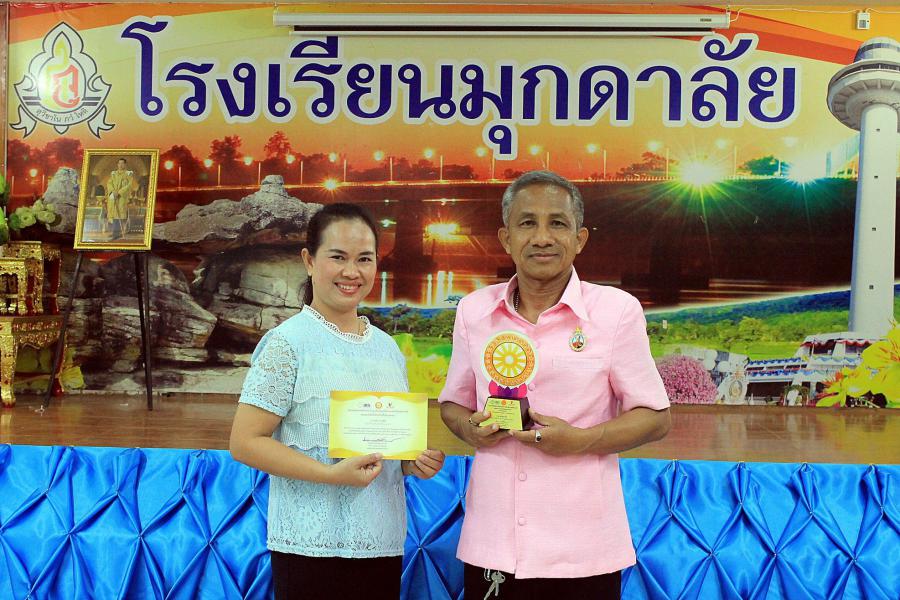 20 กุมภาพันธ์ 2561 เวลา 09.00 น. นายศุภศิษฐ อินทรวิเศษ ผู้อำนวยการโรงเรียนมุกดาลัย คณะครูสาระการเรียนรู้สังคมศึกษาฯ และนักเรียนรับมอบโล่รางวัลและเกียรติบัตรการแข่งขันตอบปัญหาศีลธรรมในพระพุทธศาสนา รางวัลชนะเลิศ ประเภทมัธยมศึกษาตอนต้น จังหวัดมุกดาหาร และรางวัลรองชนะเลิศ อันดับที่ 1 ประเภทประถมศึกษา จากชมรมพุทธศาสตร์สากลในอุปถัมภ์ สมเด็จพระมหารัชมังคลาจารย์ S:0