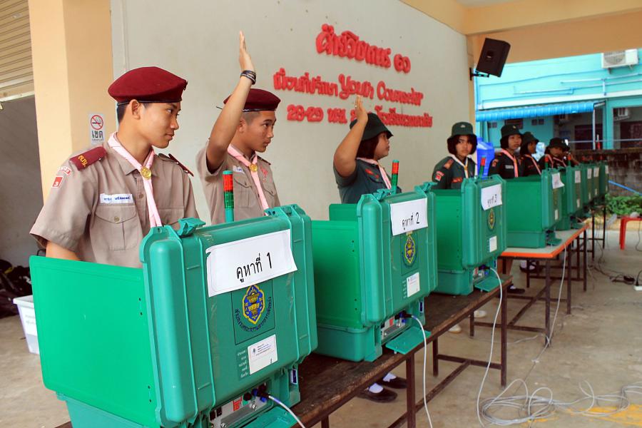 ลงคะแนนเลือก ปธ.นร.รร.มุกดาลัย