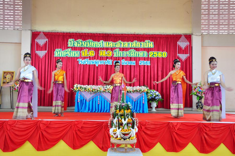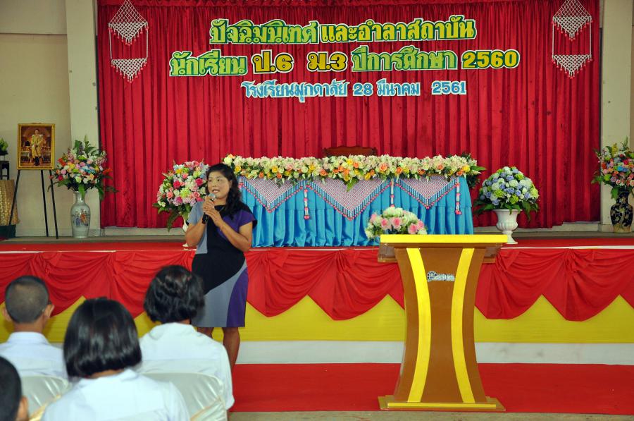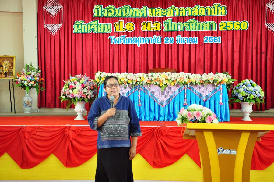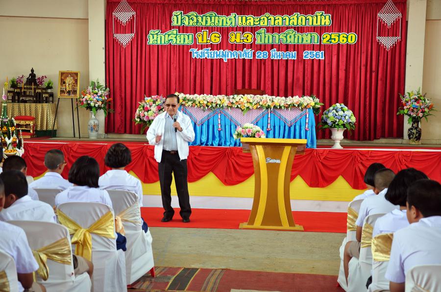 28 มีนาคม 2561 เวลา 8.30 น. โรงเรียนมุกดาลัยจัดกิจกรรมปัจฉิมนิเทศและอำลาสถาบันให้กับนักเรียนชั้น ป.6 และ ม.3 ประจำปีการศึกษา 2560 โดยช่วงแรกเป็นการปัจฉิมนิเทศนักเรียน ขอขอบคุณคุณเพียรพิศ สกุลไทย และคุณครูจากวิทยาลัยเกษตรและเทคโนโลยีร้อยเอ็ด ที่แนะแนวให้ความรู้ชี้แนวทางการศึกต่อ พร้อมด้วยนายรังสิฐ ลือพาณิชย์กุล นายกสมาคมศิษย์เก่า ผู้ปกครอง โรงเรียนมุกดาลัย ที่ได้มาให้แนวทางให้ประสบผลสำเร็จในชีวิต หลังจากนั้นมีการมอบเกียรติบัตร รายงานผลการเรียนให้กับนักเรียน ป.6 และ ม.3 มอบทุนการศึกษาให้กับนักเรียนที่ผลการเรียนดี และมีจิตอาสาช่วยเหลืองานดีเด่น โดยนายศุภศิษฐ อินทรวิเศษ ผู้อำนวยการโรงเรียนมุกดาลัย S:0