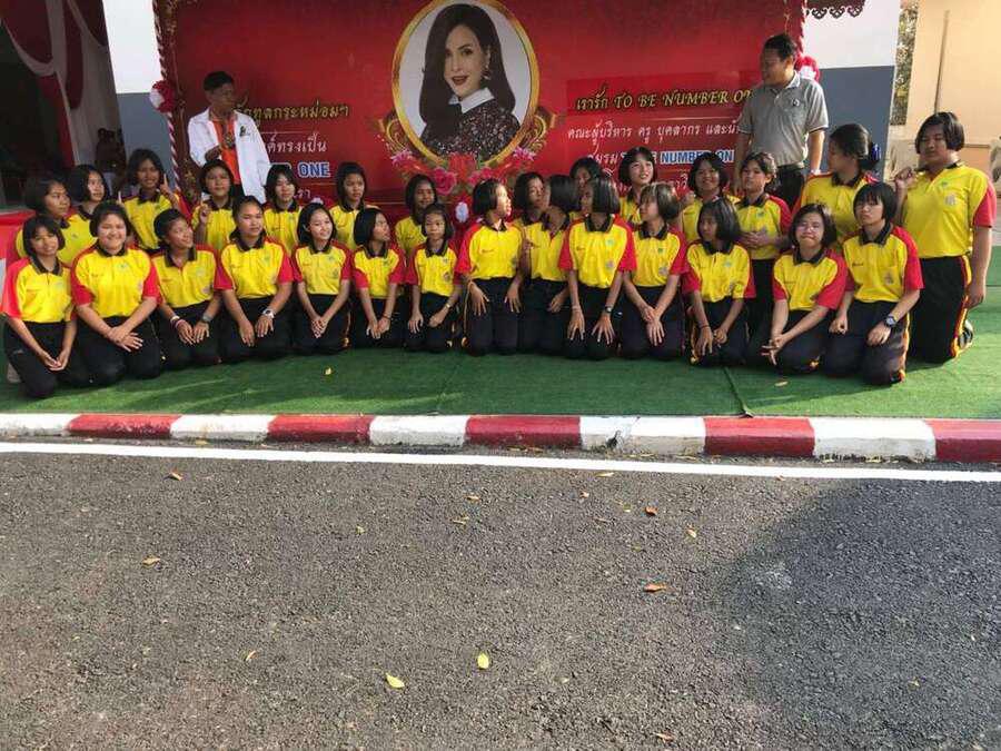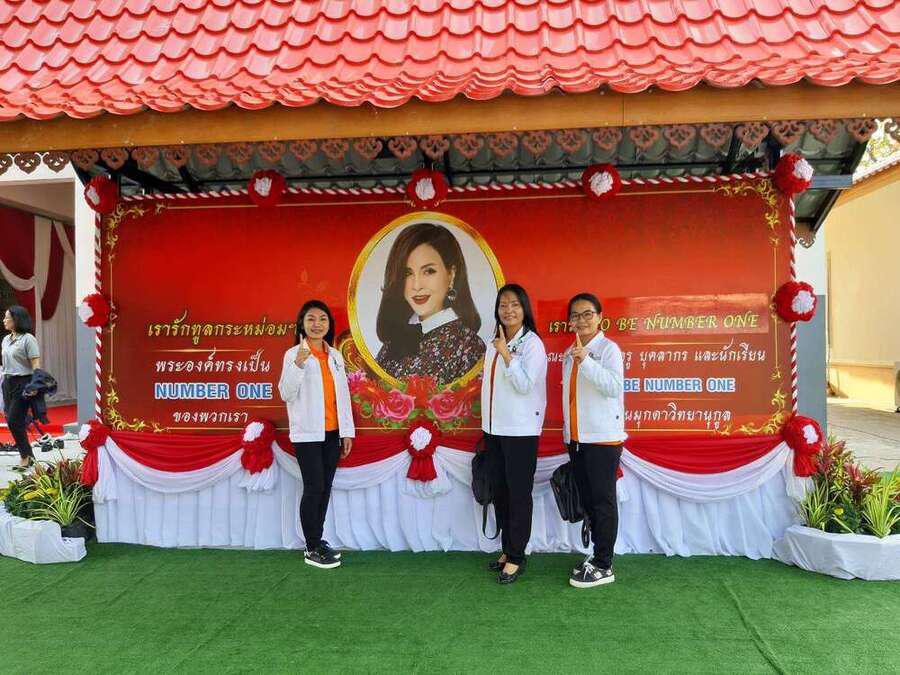ชาติชาย ก่อคุณ ผู้อำนวยการโรงเรียนมุกดาลัย คณะครู และตัวแทนนักเรียน ร่วมรับเสด็จทูลกระหม่อมหญิงอุบลรัตนราชกัญญา สิริวัฒนาพรรณวดี