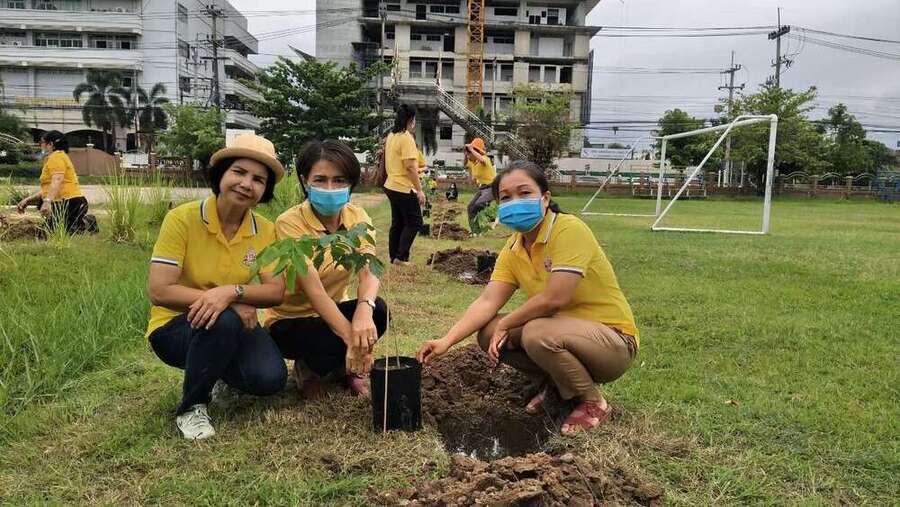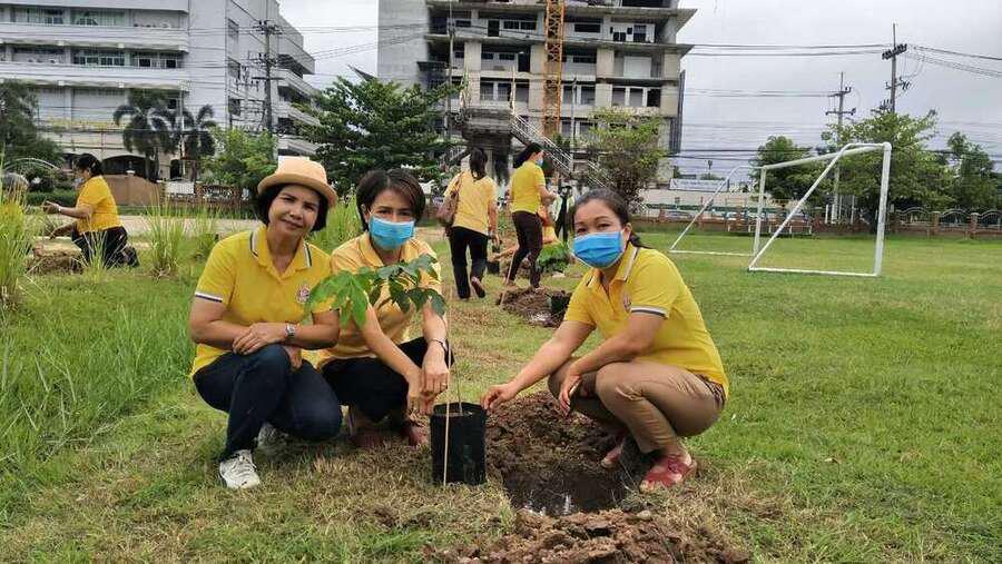 คณะครูโรงเรียนมุกดาลัย ร่วมกันปลูกต้นไม้ ในวันต้นไม้ประจำปีของชาติ ร่วมใจไทย ปลูกต้นไม้ เพื่อแผ่นดิน? สืบสานสู่ 100 ล้านต้น ณ บริเวณโรงเรียนมุกดาลัย S:0