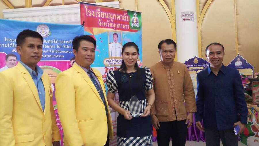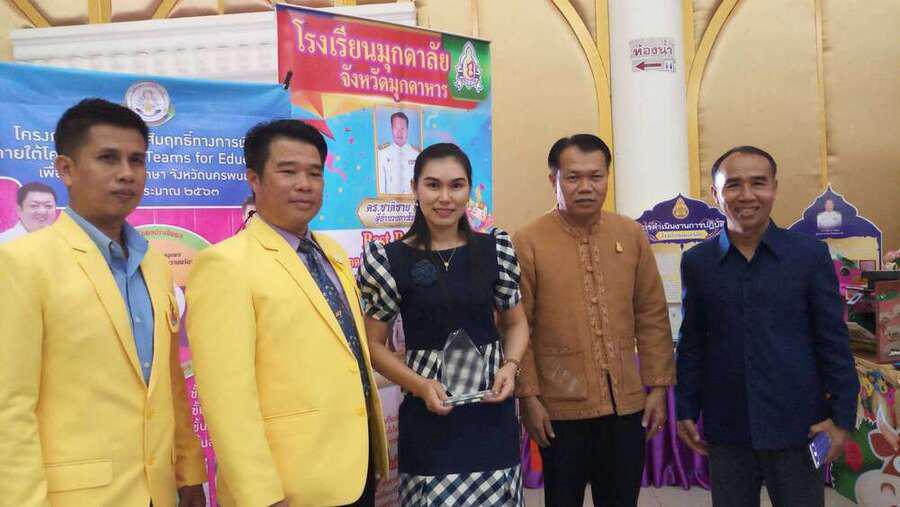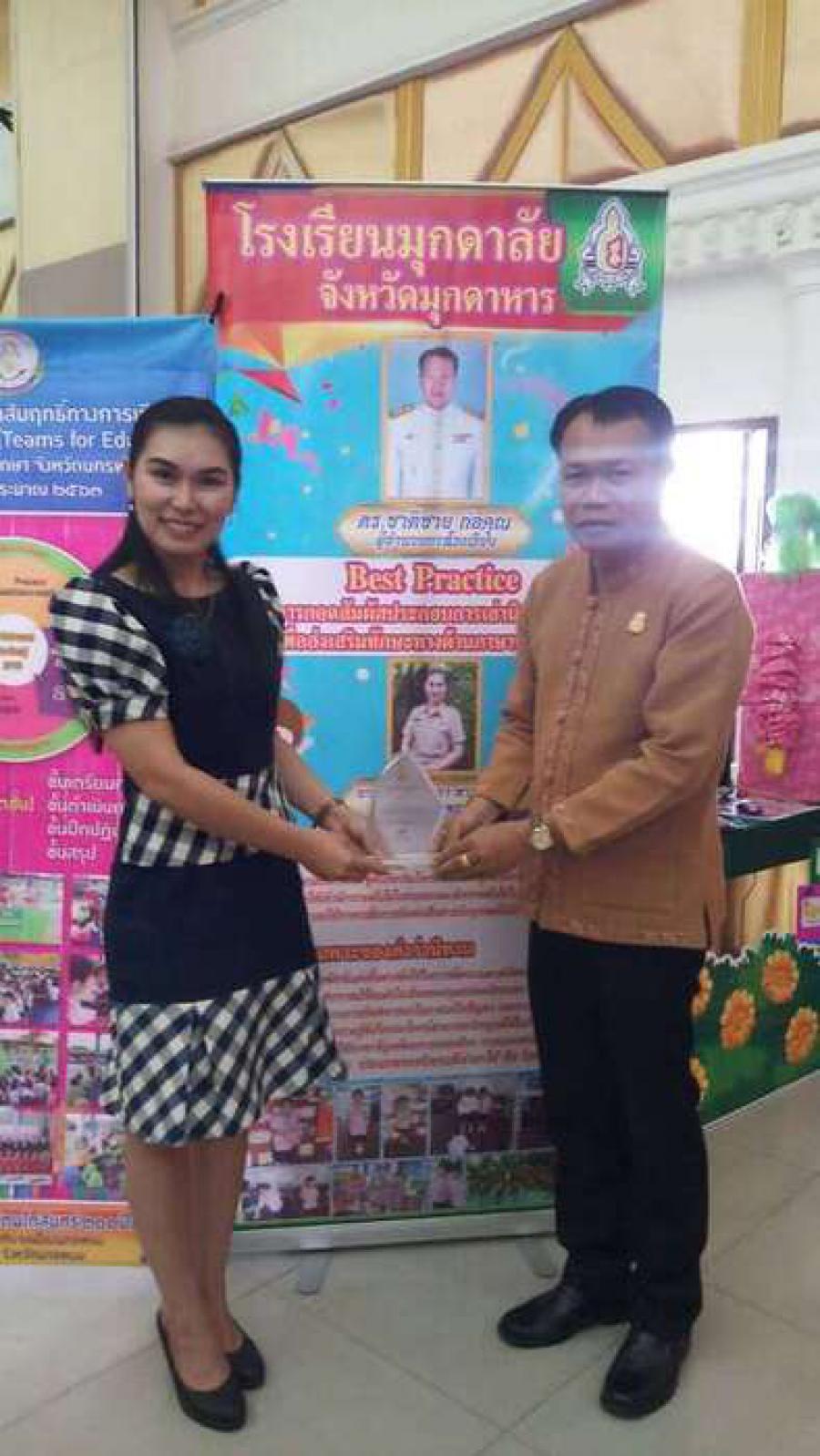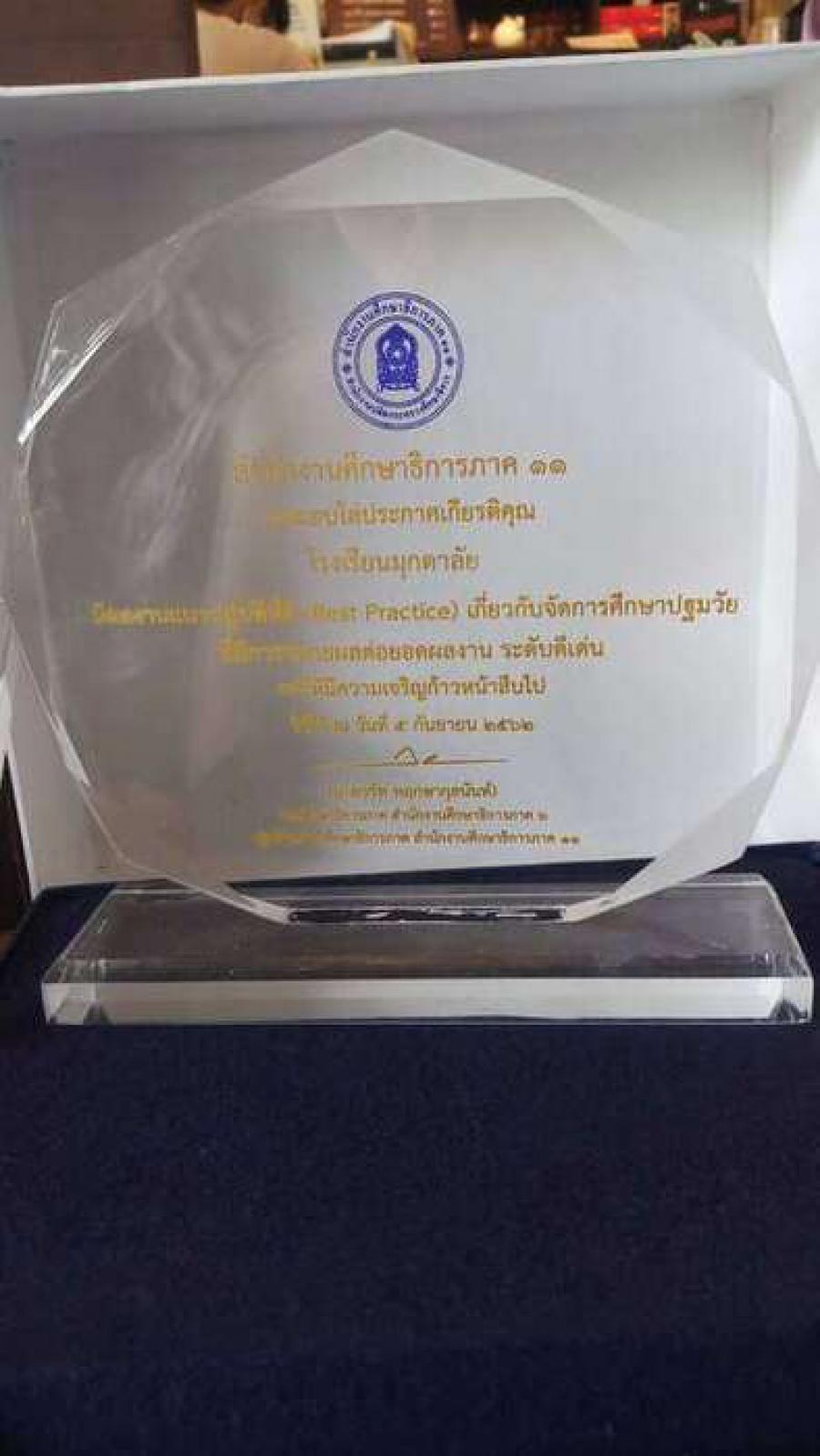 ดร.ชาติชาย ก่อคุณ ผู้อำนวยการโรงเรียนมุกดาลัย รับโล่ผลงานแนวปฏิบัติที่ดี (Best Practice) เกี่ยวกับการจัดการศึกษาปฐมวัย ที่มีการขยายผลต่อยอดผลงาน ระดับดีเด่น ปี 2562 และนางสาวเนตรนภา หารสุโพธิ์ ครูโรงเรียนมุกดาลัย รับโล่รางวัล รองชนะเลิศ อันดับที่ 1 การคัดเลือกครูผู้มีผลงานแนวปฏิบัติที่เป็นเลิศ (Best Practice) ด้านการจัดประสบการณ์ ระดับการศึกษาปฐมวัย ปี 2563 และร่วมพิธีเปิดการจัดงานแลกเปลี่ยนเรียนรู้และถอดบทเรียนฯ และร่วมจัดนิทรรศการ Best Practices ณ โรงแรม พี ซี พาเลซ จ.สกลนคร โดย สำนักงานปลัดกระทรวงศึกษาธิการ ภาค 11 S:0