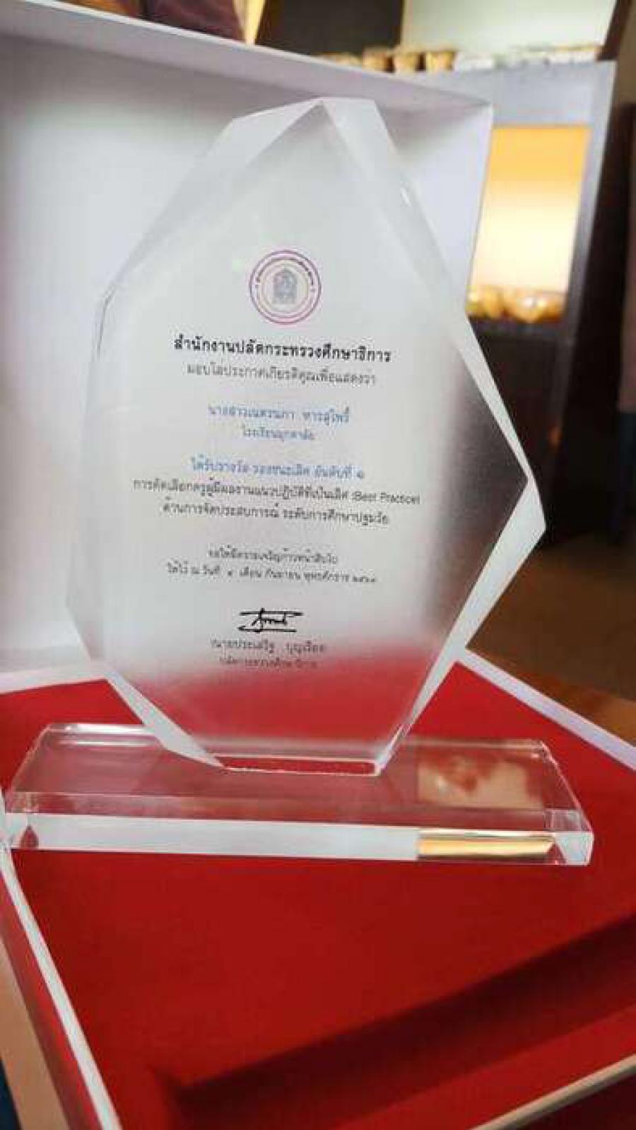 รับโล่ผลงานแนวปฏิบัติที่ดี (Best Practice) เกี่ยวกับการจัดการศึกษาปฐมวัย ที่มีการขยายผลต่อยอดผลงาน ระดับดีเด่น ปี 2562 และรับโล่รางวัล รองชนะเลิศ อันดับที่ 1 การคัดเลือกครูผู้มีผลงานแนวปฏิบัติที่เป็นเ