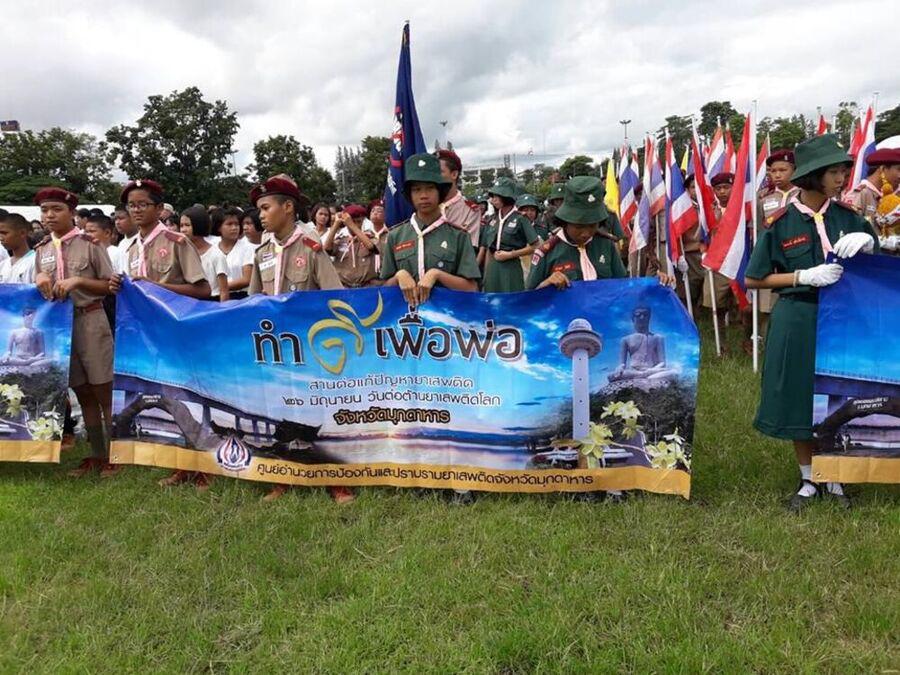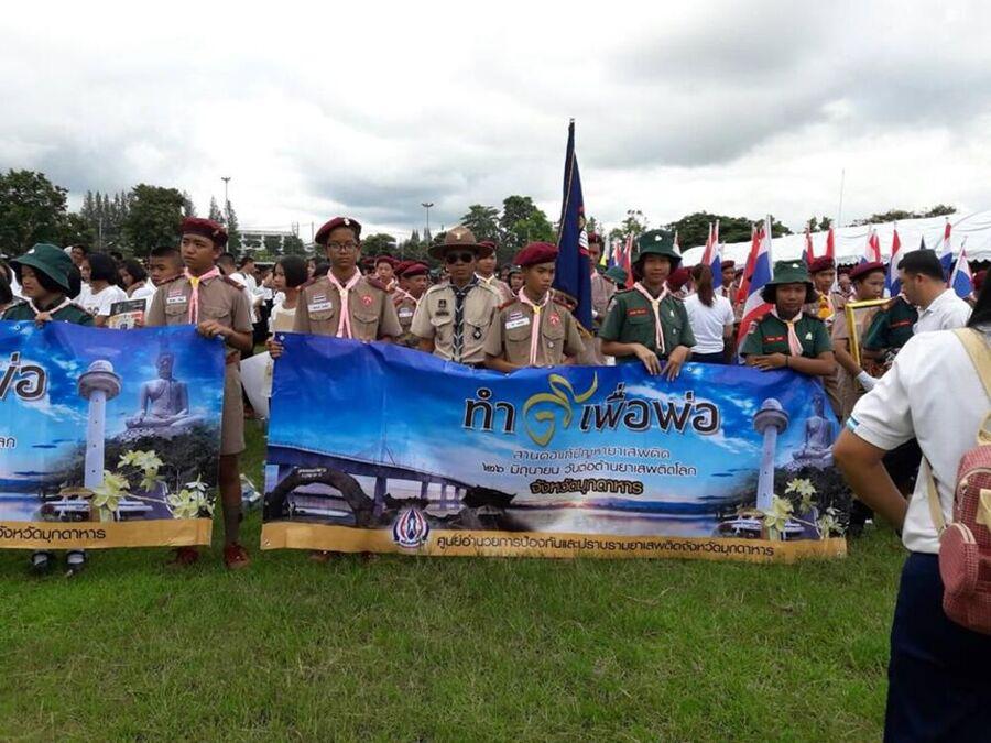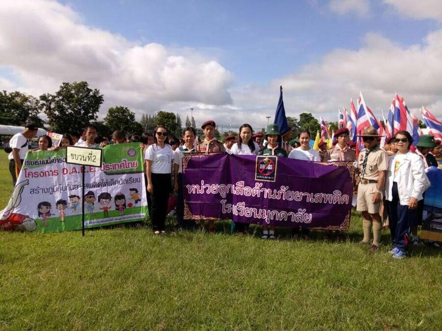 26 มิถุนายน 2560 คณะครู ลูกเสือ เนตรนารี นักเรียน โรงเรียนมุกดาลัย ร่วมเดินขบวนรณรงค์ต่อต้านยาเสพติด ตามกิจกรรม ทำดีเพื่อพ่อ สานต่อแก้ปัญหายาเสพติด S:0