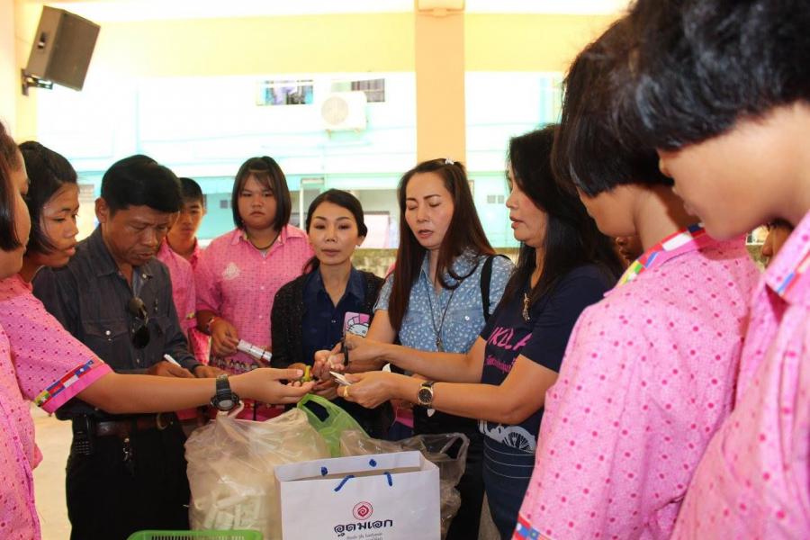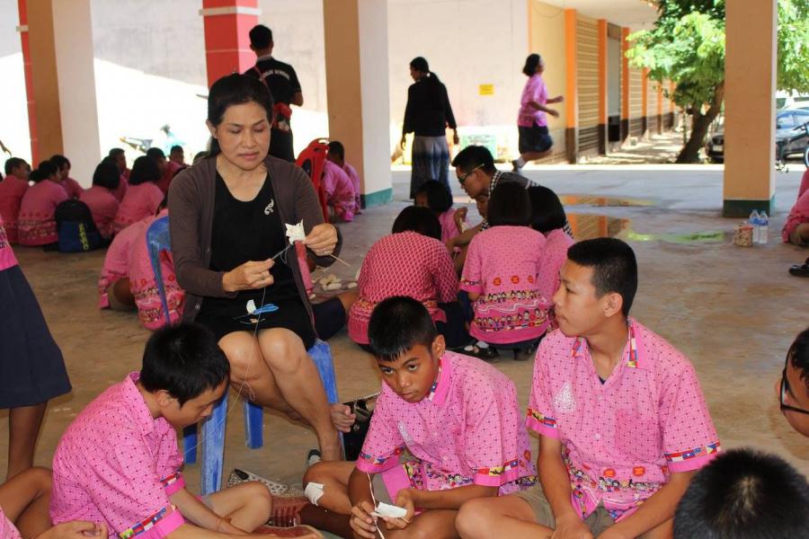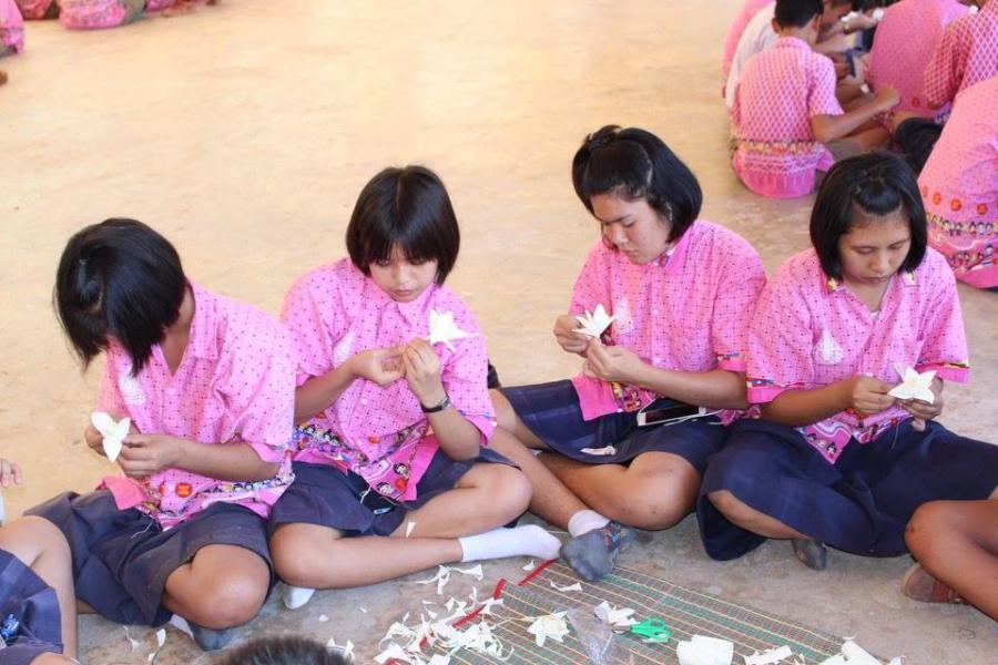 คณะครู นักเรียน โรงเรียนมุกดาลัย ร่วมกันทำดอกดารารัตน์ น้อมถวายเป็นพระราชกุศล เพื่อแจกจ่ายให้ประชาชน ในพระราชพิธีถวายพระเพลิงพระบรมศพ พระบาทสมเด็จพระปรมินทรมหาภูมิพลอดุลยเดช S:0