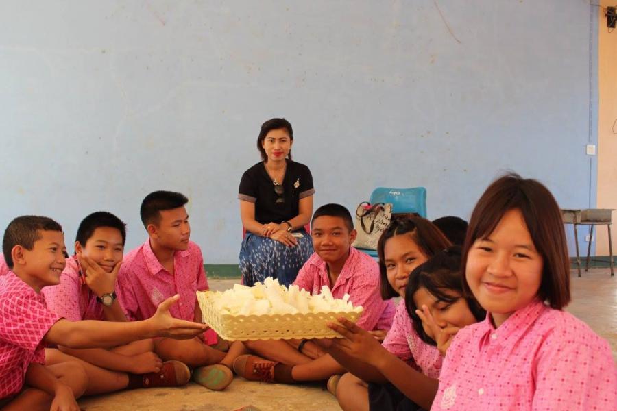 คณะครู นักเรียน โรงเรียนมุกดาลัย ร่วมกันทำดอกดารารัตน์
