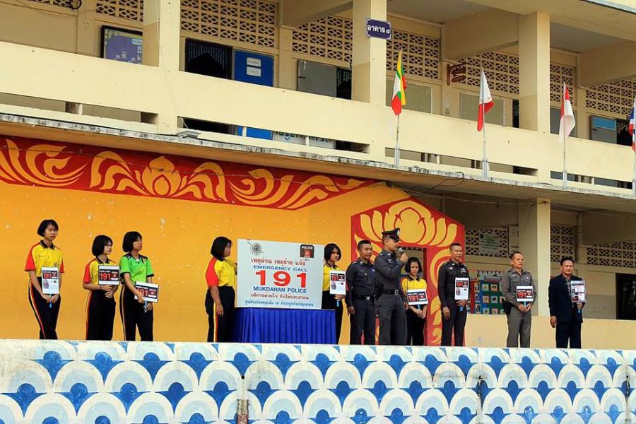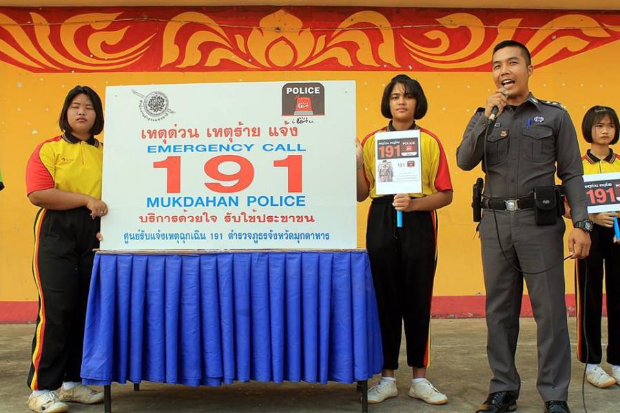2 มีนาคม 2561 เวลา 08.30 น. สถานีตำรวจภูธรจังหวัดมุกดาหาร ได้ให้ความรู้แก่นักเรียนโรงเรียนมุกดาลัย ประชาสัมพันธ์เกี่ยวกับศูนย์รับแจ้งเหตุฉุกเฉิน 191 เพื่อให้เด็กนักเรียนรู้จักหน่วยงาน (ศูนย์รับแจ้งเหตุ 191) ทราบขั้นตอนการทำงานของเจ้าหน้าที่รับแจ้ง และให้ความรู้กฏหมายเบื้องต้น ระเบียบ ข้อบังคับ ที่เกี่ยวข้องกับการก่อกวน และผลกระทบที่เกิดจากการโทรเล่น หรือโทรก่อกวน อาจส่งผลต่อชีวิตและทรัพย์สินได้ S:0