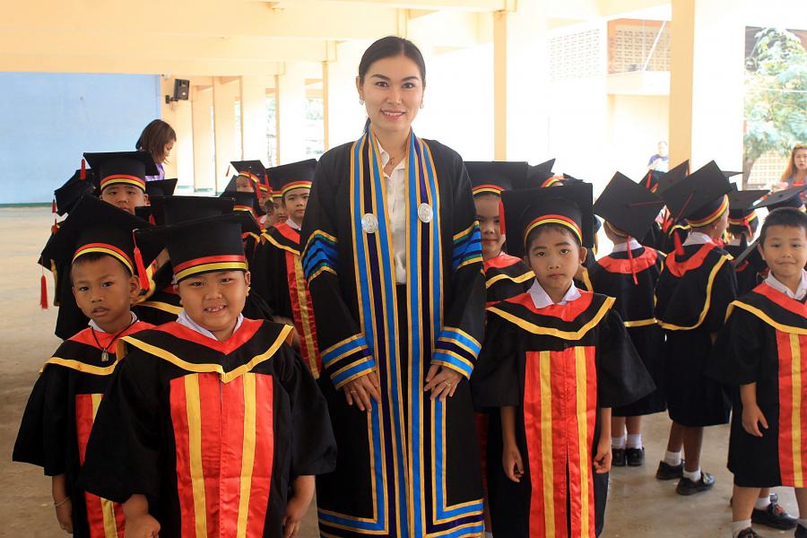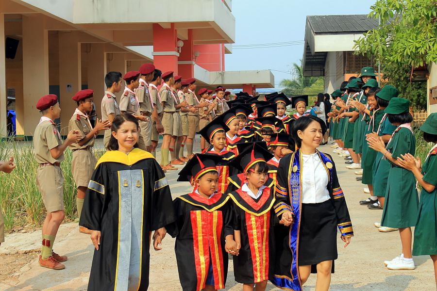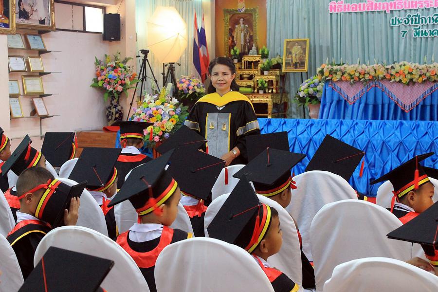 พิธีมอบสัมฤทธิบัตร แก่นักเรียนที่จบการศึกษาระดับอนุบาล