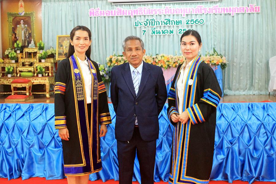 7 มีนาคม 2561 เวลา 8.50 น. นายศุภศิษฐ อินทรวิเศษ ผู้อำนวยการโรงเรียนมุกดาลัยเป็นประธานในพิธีมอบสัมฤทธิบัตร แก่นักเรียนที่จบการศึกษาระดับอนุบาล พร้อมให้โอวาทในครั้งนี้ด้วย S:0